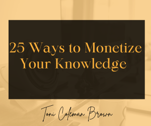 Hi! My name is Toni Coleman Brown and I help emerging entrepreneurs turn their knowledge into digital products. I also help them to build an audience and online presence so that they can have someone to sell these products to. I have been teaching others how to use their knowledge to attract their ideal clients and generate leads online for over 20 years and I can help you do the same. The online world is constantly evolving and I am here to help you navigate this landscape with ease and grace.